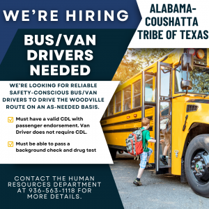 We’re looking for reliable, safety-conscious Bus/Van Drivers to drive the Woodville route on an as-needed basis.